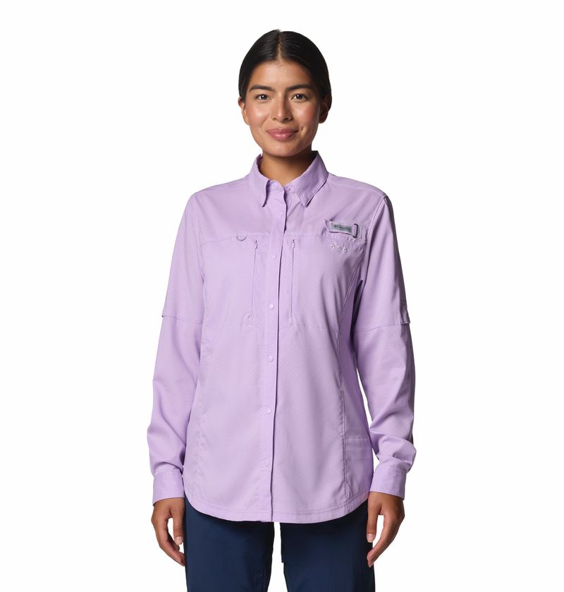 Blusa Para Mujer Manga Larga PFG Shadowcaster™ Zero Lila Columbia.Un básico de pesca inspirado en la ropa de los guías profesionales. Con un estilo elegante, además de tecnología refrescante, con protección UV y que absorbe el sudor, te mantendrá cómodo y protegido en mar abierto.