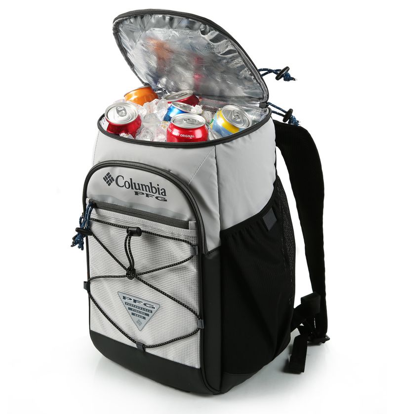 Cooler PFG Roll Caster™ Gris Columbia.Mochila Cooler de alto rendimiento para 30 latas. Su respaldo acolchado y transpirable ofrece mayor comodidad, mientras que los puntos de sujeción en la parte delantera permiten ampliar su capacidad.
