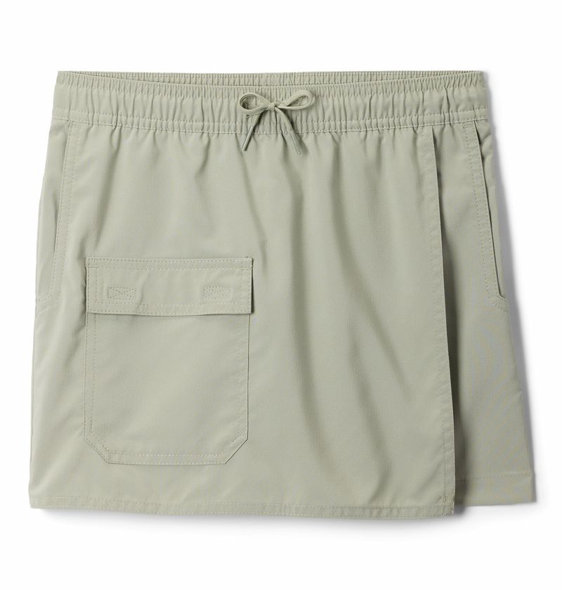 Falda Para Niña Con Short Interno Silver Ridge™ Utility Verde Columbia.Mantenlos protegidos de los rayos UV y cómodos en las caminatas familiares con esta versátil falda pantalón, que combina el aspecto de una falda con la cobertura de pantalones cortos y un poco de elasticidad para niños activos.